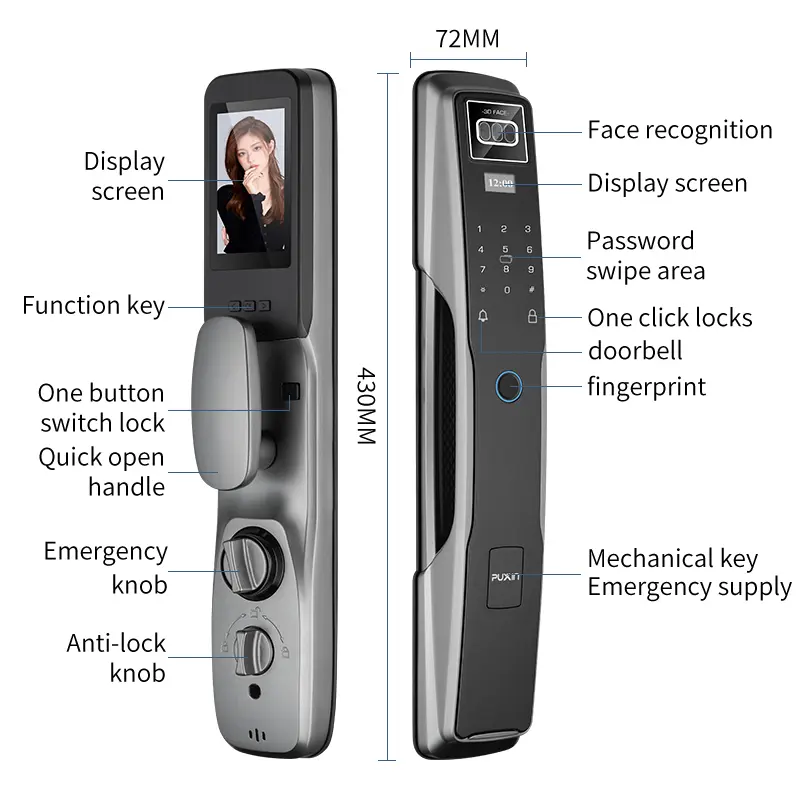 1 миллион пиксельді мысық көзінің камерасымен және 1080P HD экранымен жабдықталған PuXin Q19 Cat Eye Smart Lock сенімді визуалды бақылау жүйесін құрайды. Пайдаланушылар күндіз-түні есіктің сыртындағы жағдайды анық көре алады, бұл дәстүрлі мысық көзінің қауіпсіздік қауіптерінен аулақ болып, үй мен кеңсе қауіпсіздігін арттырады.