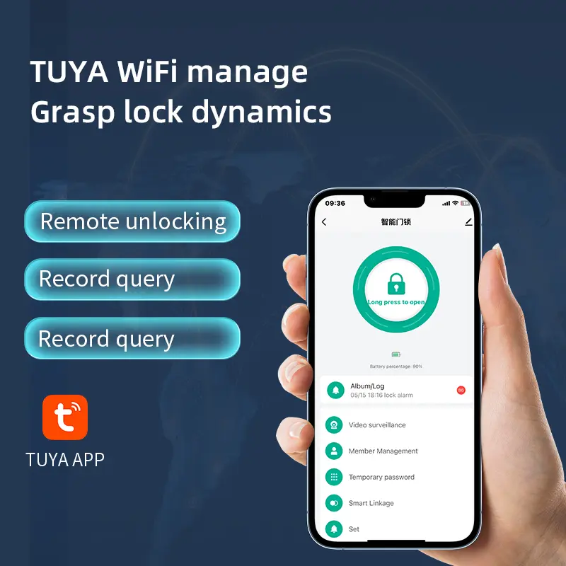 - Мобильді қолданбаның қашықтан құлпын ашу: Graffiti APP немесе арнайы есікті құлыптау қолданбасы арқылы қашықтан басқаруды қолдайды, бұл бақылауға болатын құлыпты ашу үшін есік ақпаратын нақты уақытта түсінуге мүмкіндік береді.